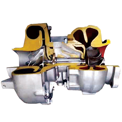 渦輪增壓器實際上是一種空氣壓縮機,通過壓縮空氣來增加進氣量。它是利用發動機排出的廢氣慣性沖力來推動渦輪室內的渦輪,渦輪又帶動同軸的葉輪,葉輪壓送由空氣濾清器管道送來的空氣,使之增壓進入氣缸。當發動機轉速增大,廢氣排出速度與渦輪轉速也同步增加,葉輪就壓縮更多的空氣進入氣缸,空氣的壓力和密度增大可以燃燒更多的燃料,相應增加燃料量和調整發動機的轉速,就可以增加發動機的輸出功率了。